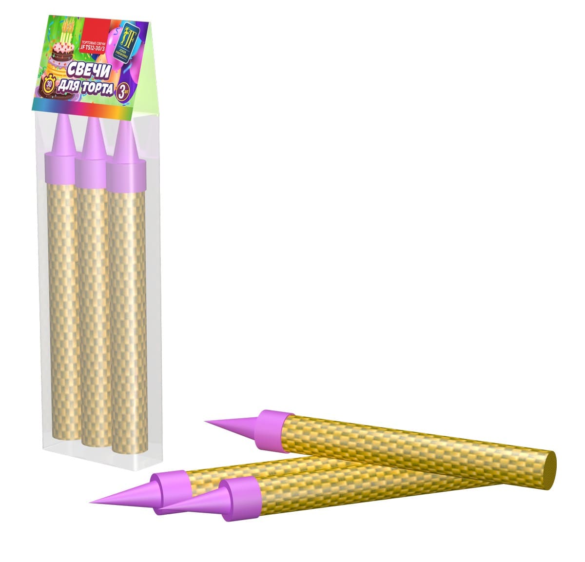 - Фейерверк фонтанчики в торт, пиротехнические тортовые свечи, 3 штуки в упаковке, JFTS12-30/3.